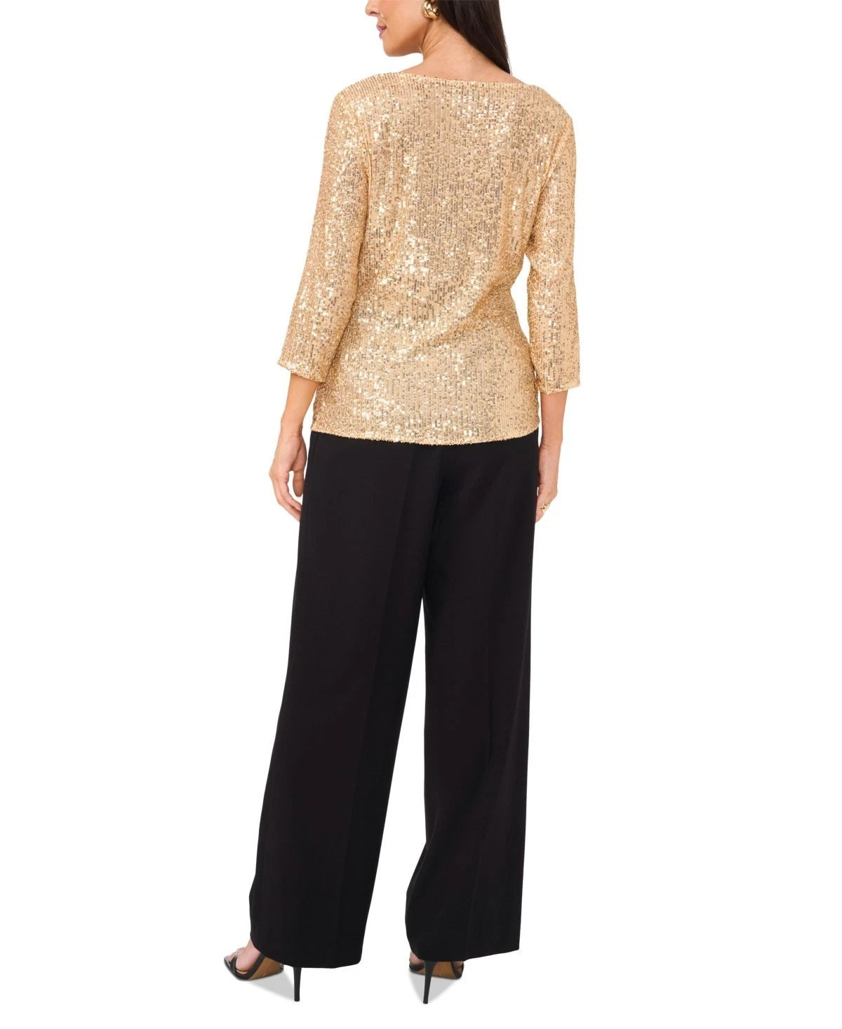 Sophisticated and elegant, this Vince Camuto top is polished with a cowlneck and sparkly sequins. ABOUT THE BRAND: Vince Camuto is a globally renowned brand that embodies European styling. Detailed craftsmanship across the line embraces current trends while maintaining a classic aesthetic.