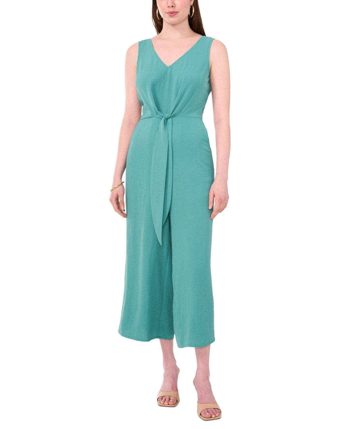 Vince Camuto Women's Sleeveless V-Neck Tie-Waist Jumpsuit Green Size Medium $109