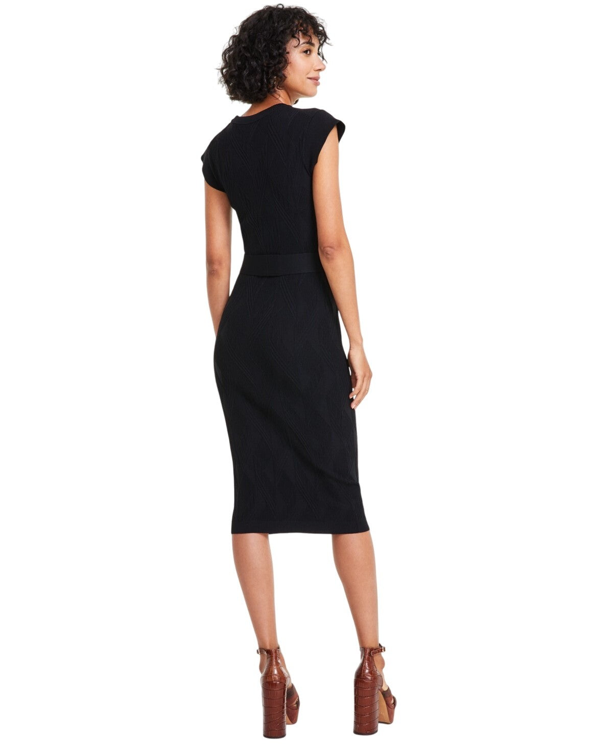 Vince Camuto Womens Textured-Knit Cap-Sleeve Midi Dress Black L. A textured knit lends a sleek finish to this form-fitting MIDI dress by Vince Camuto, cinched at the waist with an adjustable belt.. Dresses. Vince Camuto. Model: 1689b430dbf01c. Department: Women. Size Type: Regular. Midi Dress. Vince Camuto. 1689b430dbf01c. Does Not Apply. Women. Regular. Dresses Vince Camuto Model: 1689b430dbf01c Department: Women Size Type: Regular Midi Dress