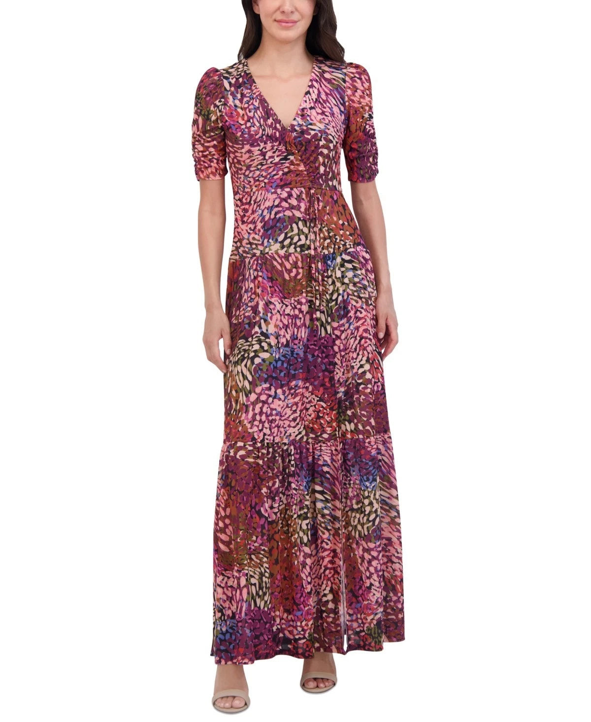 Make a statement with this women's printed maxi dress from Vince Camuto, featuring adjustable shirring and a high front slit for a stunning and customizable fit.